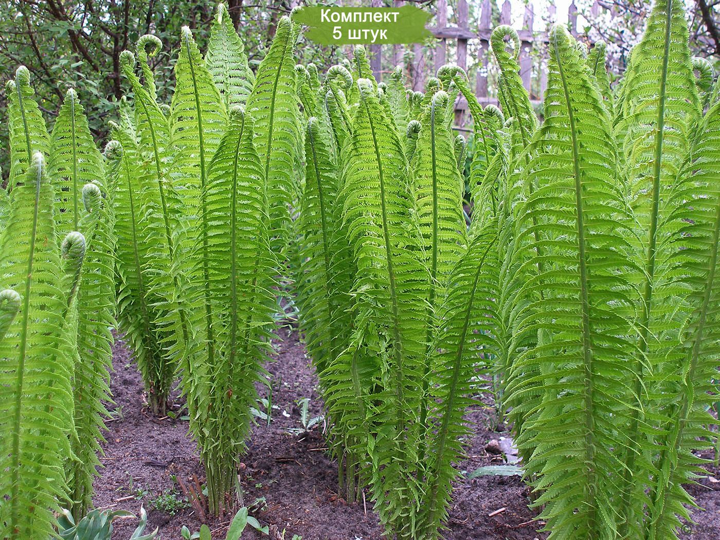 В комплект входит 5 саженцев страусника обыкновенного, готовых к высадке в открытый грунт.